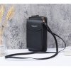 Predné vrecko na na mobil - zapínanie na cvok. Vnútro - zapínanie na zips po 3 stranách obvodu; uprostred peňaženky priehradka na mince so zipsovým zapínaním; po bokoch 4 x priehradka na karty; ďalej 2 samostatné na peniaze, mobil vreckovky, lesk, rúž a pod.