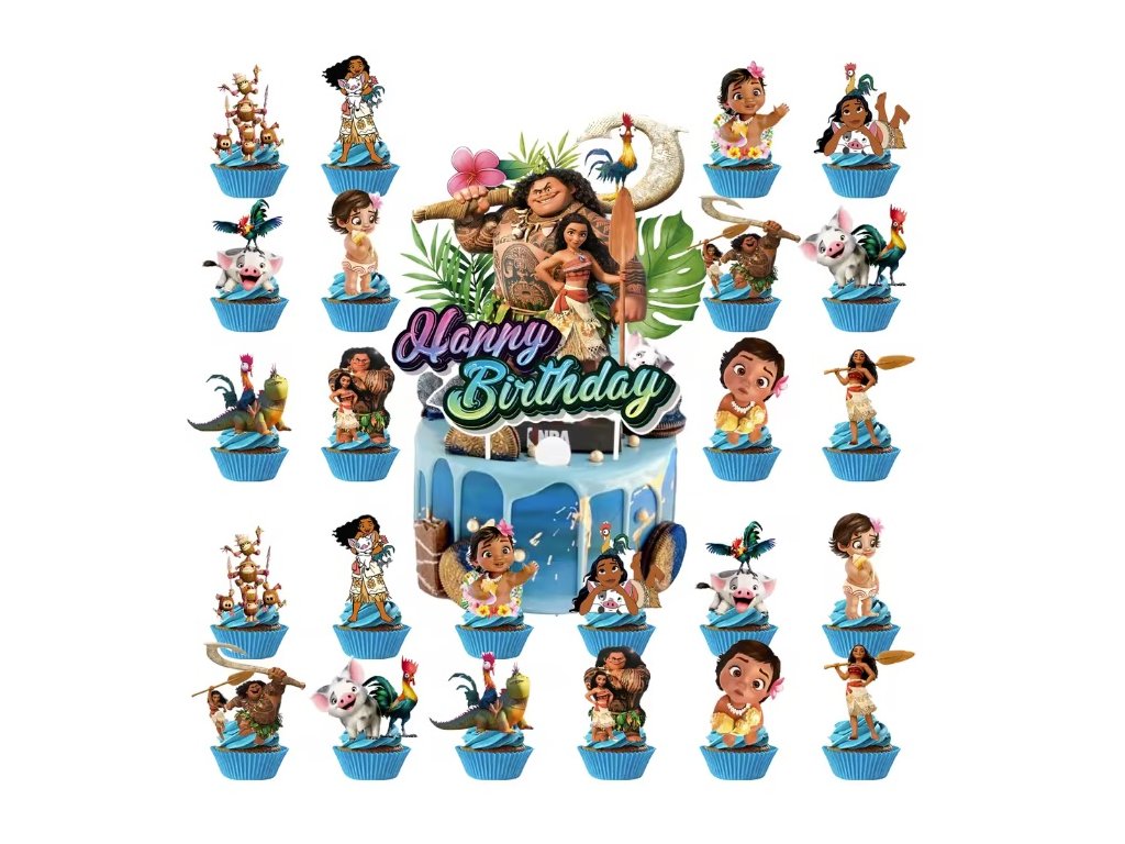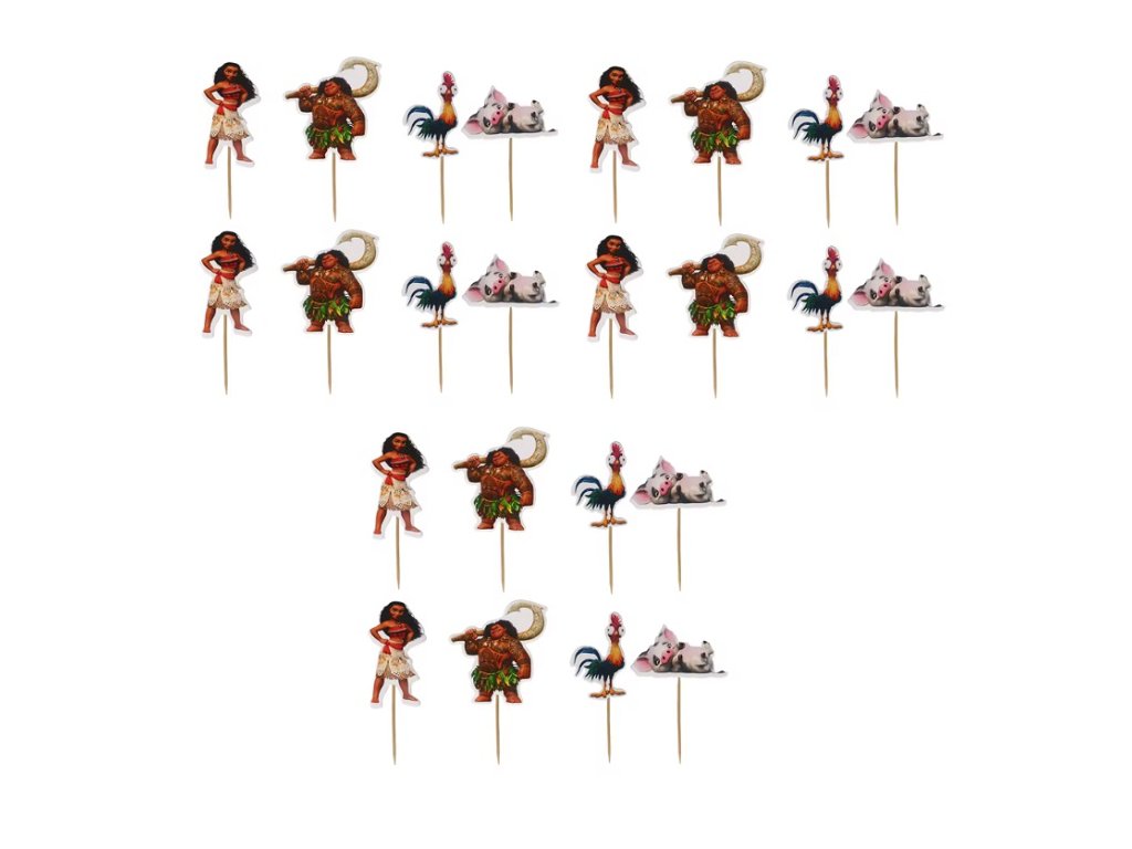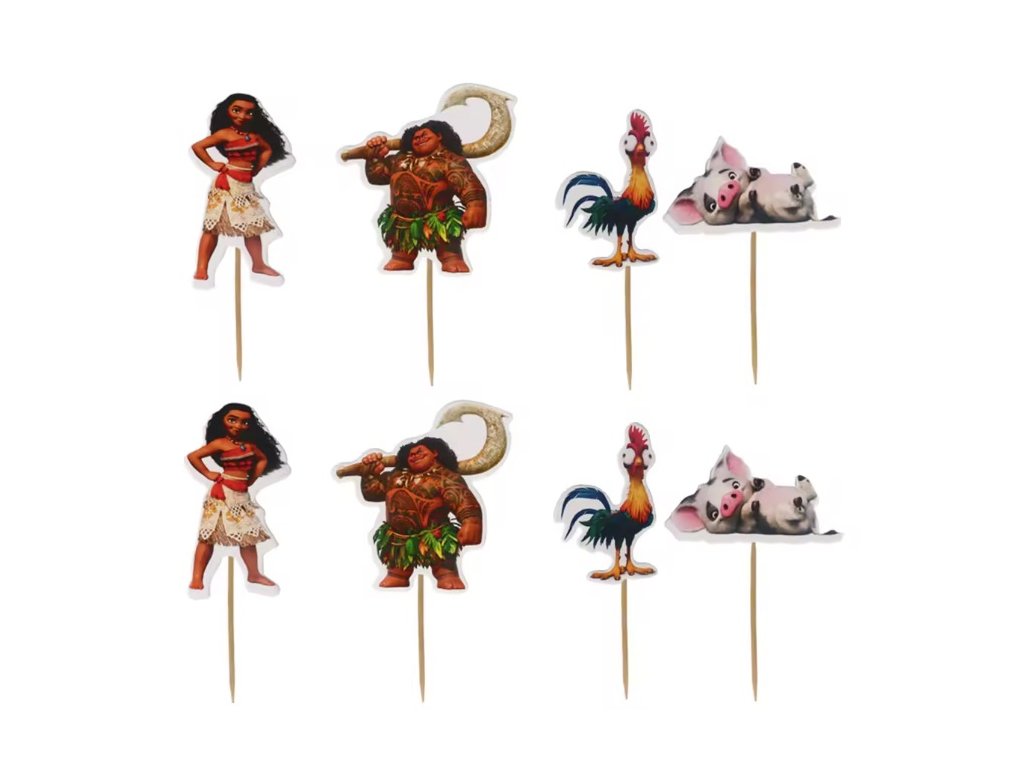 Balenie č. 2 (4492B) obsahuje 24 kusov: Ozdoba na cupcake alebo muffiny s motívom Vaiany a jej priateľov (8-10cm so špáradlom)