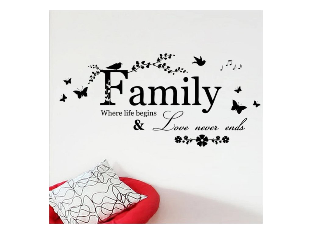 Nálepka na stenu Rodina - Kde život začína a láska nikdy nekončí...