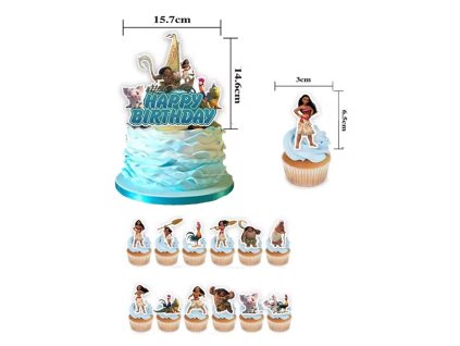 Ozdoba na tortu Happy Birthday Vaiana alebo dekorácie na cupcake a muffiny s motívom Vaiany a jej priateľov.