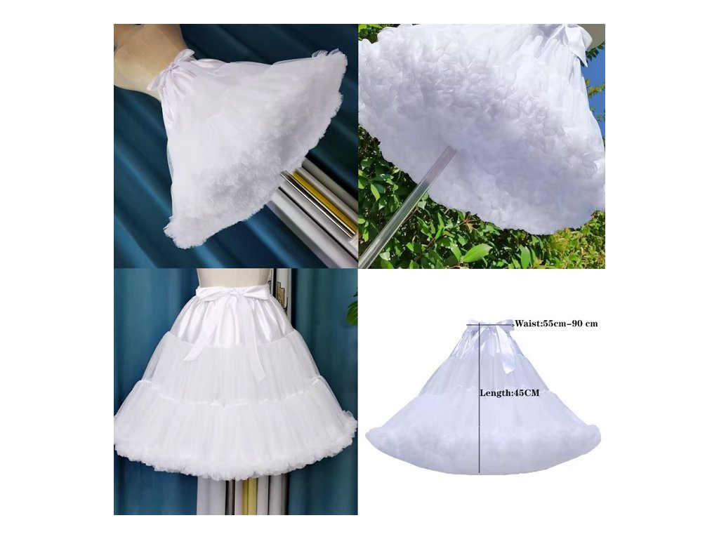 Spodnička nemá kruhy, ale má 3 vrstvy zložené z tylu a podšívky (TUTU štýl, ideálne pod sukne, kde chceme docieliť tutu efekt a "bohatosť sukne")